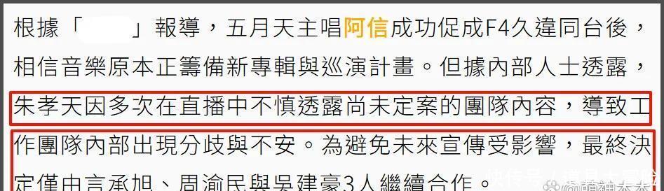 此前朱孝天在直播间径直曝光了后续F4会有单独的团体演唱会一事,还说如故在为了团体演唱会录新歌了,该说不该说的满盈走漏,惹团队动怒。